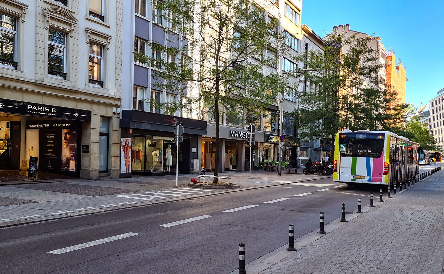 Der Bus fährt einmal längs durch Bonnevoie, zuletzt am Restaurant Lisboa vorbei und verlässt über den Kreisverkehr das Viertel in Richtung Howald. Es folgen Industriebrachen, Lagerhallen und ein Betonwerk.