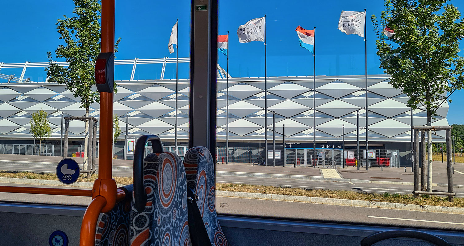 Meine zweite Fahrt bringt mich von der Oberstadt nach Bonnevoie und weiter bis zum neuen Geschäftsviertel Gasperich. Endstation ist der Park&Ride-Parkplatz am Fußballstadion.