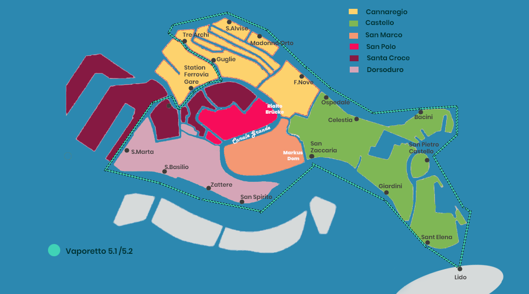 | Sehenswürdigkeiten | Markusdom, Biennale-Gelände, Cannaregio, Lido |