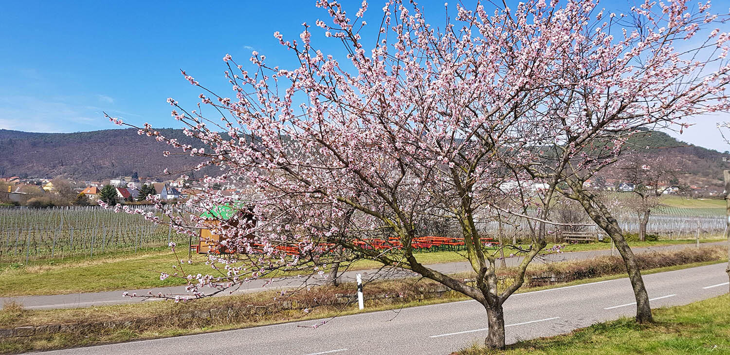 Und die Mandelbäume sind die ersten, die im Frühjahr blühen. Sie sind das erste Lebenszeichen nach dem langen Winter. Und deshalb setzt zur Mandelblüte ein regelrechter Hype ein. Alle wollen zu den blühenden Mandelbäumen. „Am vergangenen Wochenende hat Gimmeldingen sein Mandelblütenfest gefeiert und über 20.000 Besucher sind am Sonntag hierher geströmt“, berichtet Füssl.