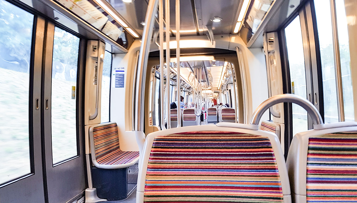 Die Sitzbezüge der modernen Züge haben ein schönes Streifendesign.