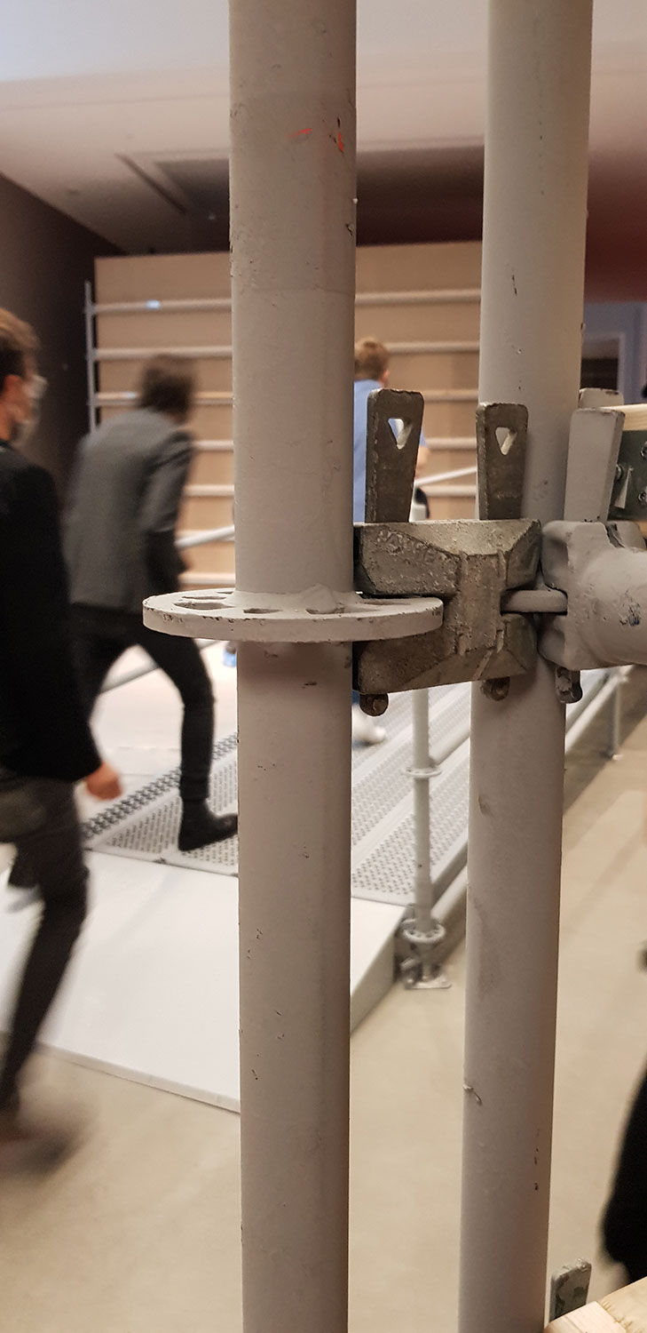 Über Rampen und an Baugerüsten vorbei geht es zum zweiten Teil der Ausstellung. Zwei starke Videos zeigen gesellschaftliche Umbrüche und werfen Fragen nach Zugehörigkeit und Akzeptanz auf.