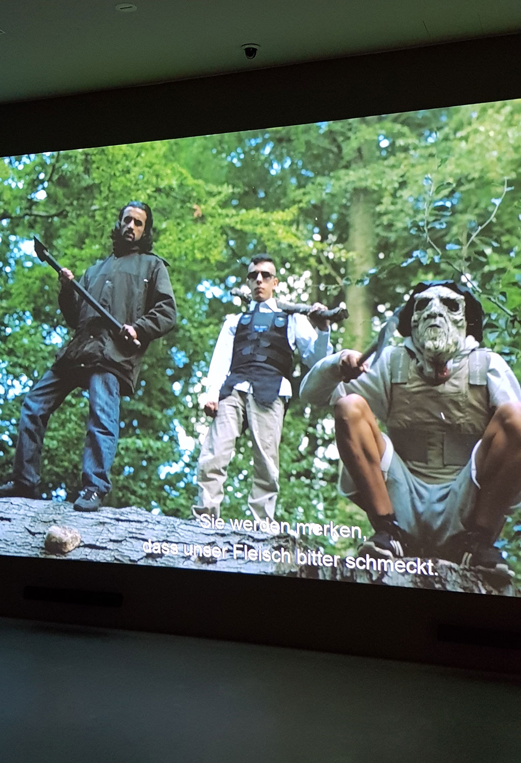 Im Dunkel des nächsten Raumes überwältigt mich die Wucht der Musik und die Ausdrucksstärke der Tänzer. Das siebenminütige Video des französischen Filmkünstlers Clément Cogitore zeigt Street-Dancer aus den Banlieus von Paris, die „Krump“ zu den Klängen einer Barockoper tanzen. Mit den Underdogs auf der Bühne der elitären Pariser Oper sollen soziale Vorurteile aufgebrochen und Raum neu verhandelt werden. Für den Ausstellungsmacher Johan Holten steht der „Umbruch“ an, Museen neu zu denken, „Wenn wir andere Teile der Gesellschaft erreichen wollen, müssen wir sie auf die Bühne bringen und nicht über sie, sondern mit ihnen arbeiten,“ erklärt Holten leidenschaftlich.