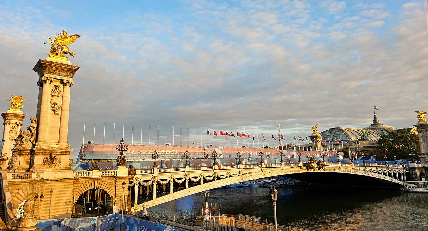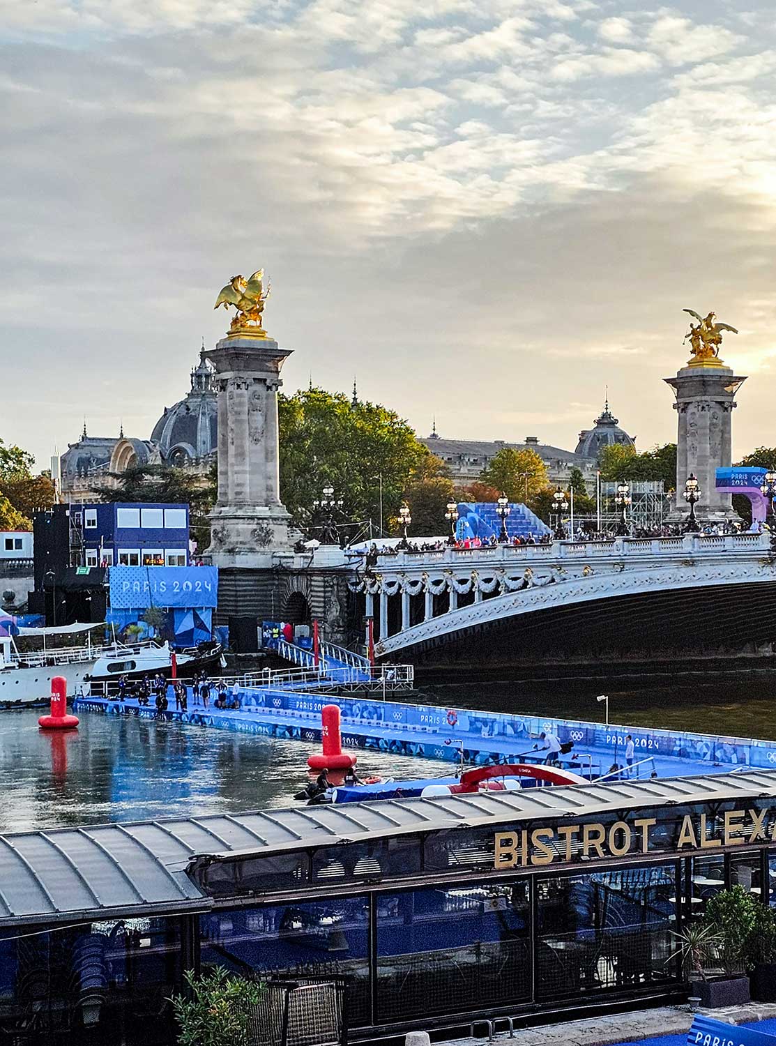 Ausführlich war ja im Vorfeld bereits über die Wasserqualität diskutiert worden, und ehrlich – sehr sauber sah die Seine nicht aus. Ich fand einen guten Platz nahe der Brücke „Pont Alexandre III“. Die Energie und Spannung in der Luft waren greifbar, während die Athletinnen sich auf den Wettkampf vorbereiteten. Darunter auch die beiden Deutschen Leonie Beck und Leonie Märtens. Nach dem Start spazierte ich am Flussufer entlang bis zum Wende- und Versorgungspunkt der Strecke und bewunderte, wie die Schwimmerinnen aus der Kraulbewegung heraus nach den angereichten Getränkeflaschen griffen, einen Schluck nahmen, die Flaschen dann wegwarfen und ohne Pause weiterkraulten.