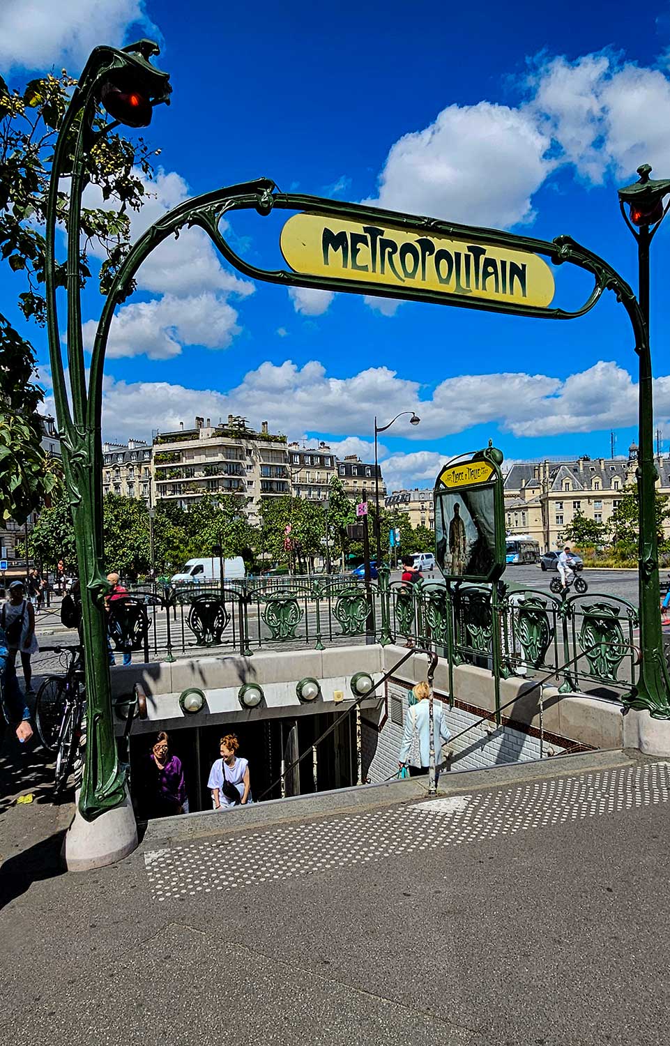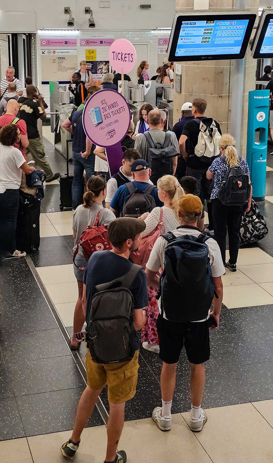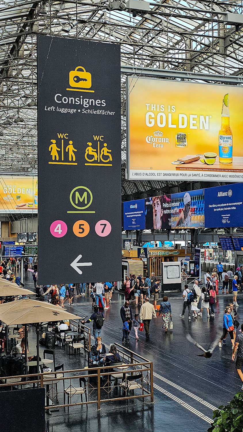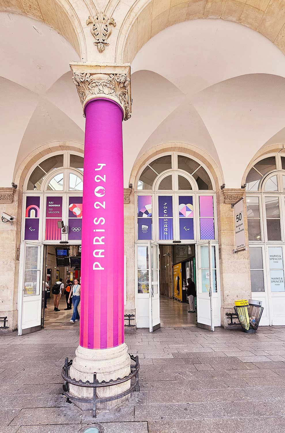 Um 7:32 Uhr fuhr ich mit dem TGV ab Karlsruhe los und war knapp drei Stunden später in Paris. Am Gare de l’Est angekommen, nahm ich mir einen Moment Zeit, um mich umzuschauen und die geschmückten Säulen am Eingang zu bewundern. Dann ging es hinunter zur Metro. Zum Glück hatte ich während der Zugfahrt die Paris-Nahverkehrs-App heruntergeladen und mir ein Zwei-Tages-Ticket für die Metro besorgt. So konnte ich entspannt an der langen Schlange vom Fahrkartenkauf vorbeigehen.