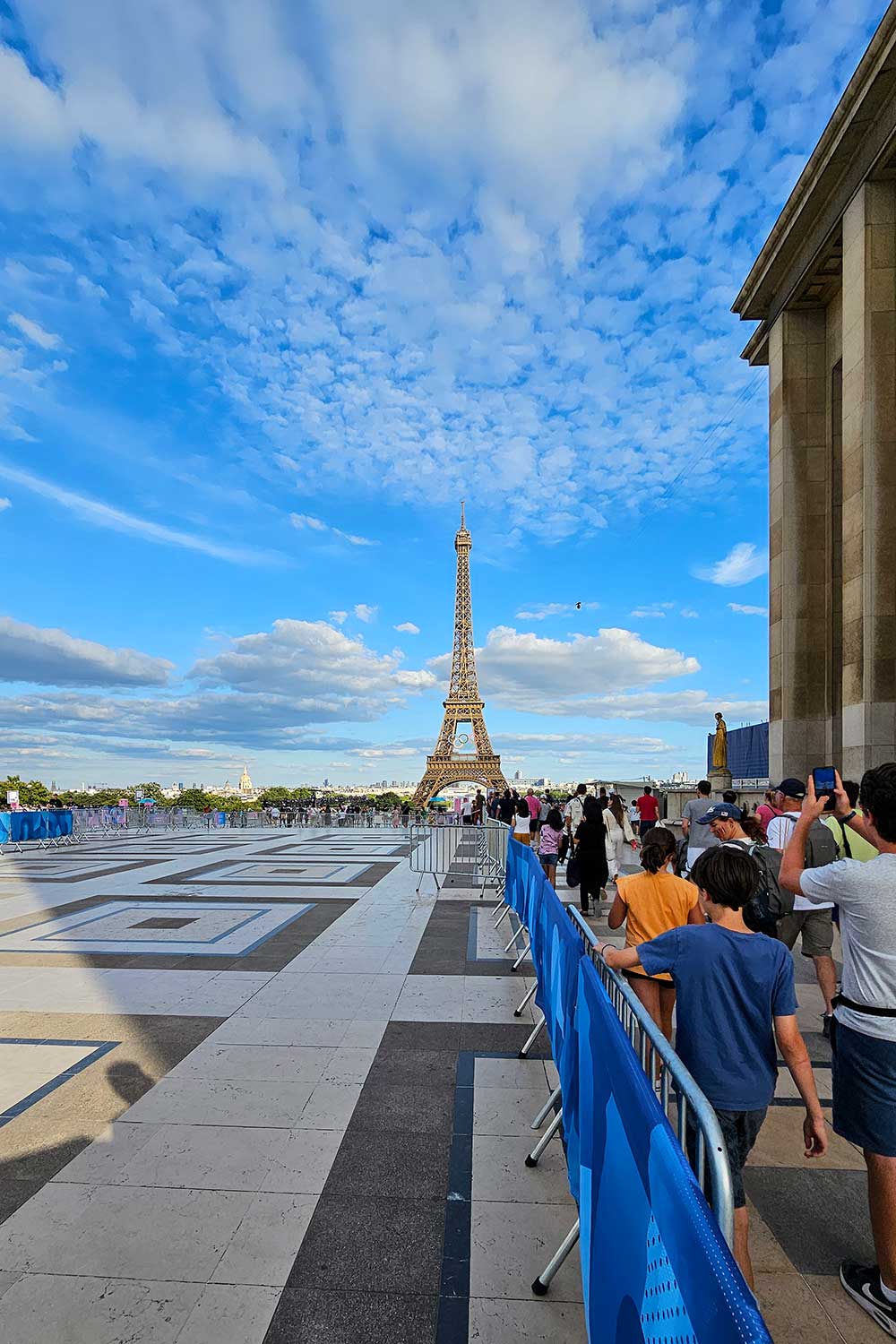 Einen echten Wow-Moment erlebst du, wenn du das Trocadéro-Gebäude passierst und zum ersten Mal den Eiffelturm in voller Pracht vor dir siehst. Sofort zückten alle ihr Smartphone, fotografierten und machten Selfies, was das Zeug hielt. Natürlich konnte auch ich nicht widerstehen!