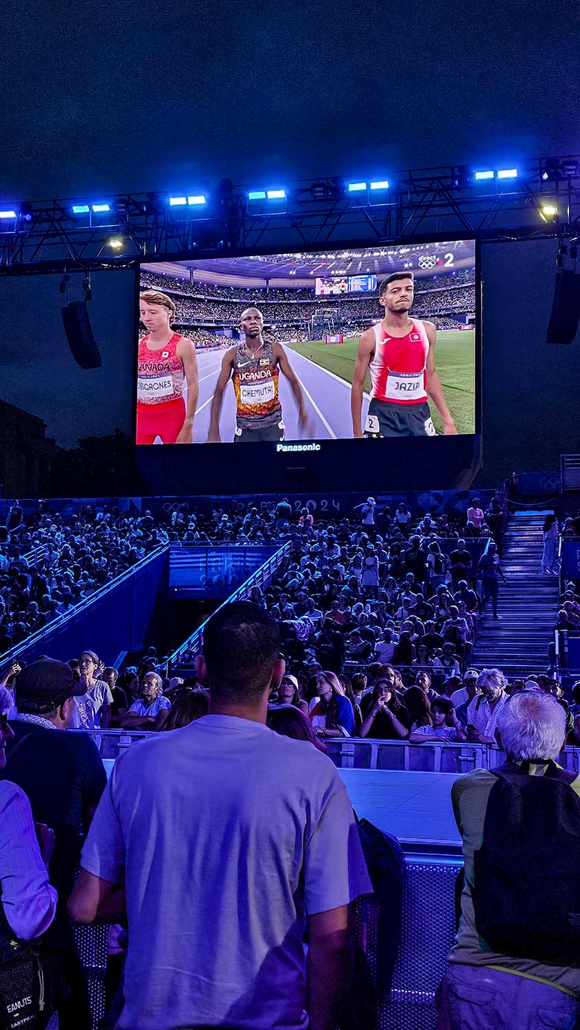 Frenetisch feierten die Franzosen den Basketballsieg über Deutschland, und die Stimmung erreichte einen ersten Höhepunkt. Danach fieberten wir alle gemeinsam mit den Leichtathleten im Stade de France mit.