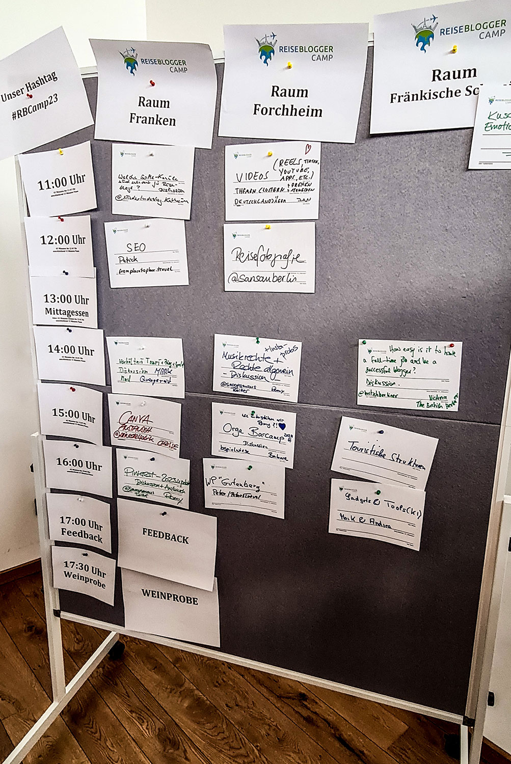 Organisiert wird das Barcamp bereits im 5. Jahr mit viel Herzblut von Romy Mlinzk (@snoopsmaus). Es wendet sich an Reiseblogger, Vlogger, Fotografen & Podcaster. Ziel ist es, sich gegenseitig zu verschiedenen Themen zu helfen, auszutauschen und zu informieren. Dabei ist es meist eine bunte Truppe an Teilnehmern: von ‚alten‘ Hasen, die schon viele Jahre in der Blogosphäre unterwegs sind, bis hin zu ‚frischen‘ Bloggern, die während der Pandemie erst angefangen haben. Sie reisen aus ganz Deutschland an, mit Gitti (@ausgeflogen.at) war auch eine Bloggerin aus Österreich dabei und zu den reinen Reisebloggern gesellten sich diesmal auch Mode- und Foodbloggerinnen.