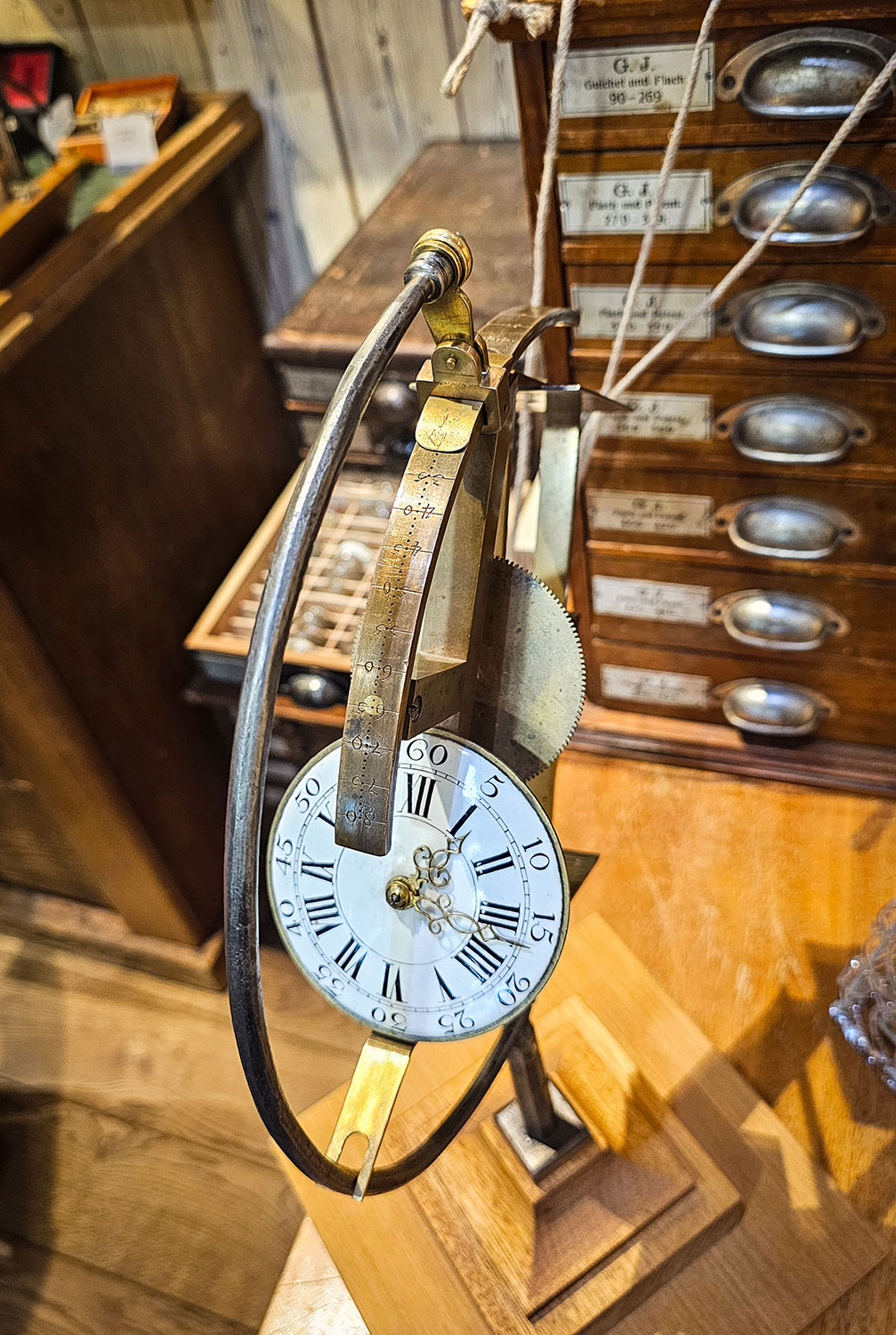 Frau Westermayer beginnt zu erzählen – und es wird die interessanteste Einführung in die Uhrengeschichte und das Uhrmacherhandwerk, die ich mir vorstellen konnte. Wir dürfen anfassen, staunen und die winzigen Räderwerke durch die Lupe betrachten.