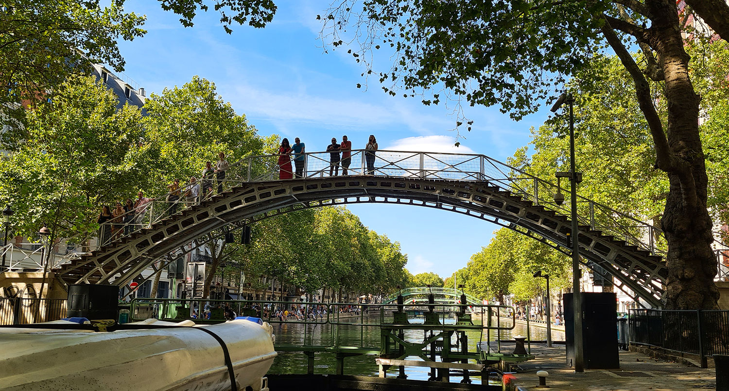 Wenn du zum Abschluss diese Sommertour noch einmal retour erleben möchtest, dann steig am Quai de la Rapée ins Boot und fahre den Canal Saint-Martin hinauf. Die Fahrt vom Jachthafen Paris-Arsenal zum Parc de la Villette dauert 2,5 Stunden. Du fährst dabei auch unter der Bastille hindurch.