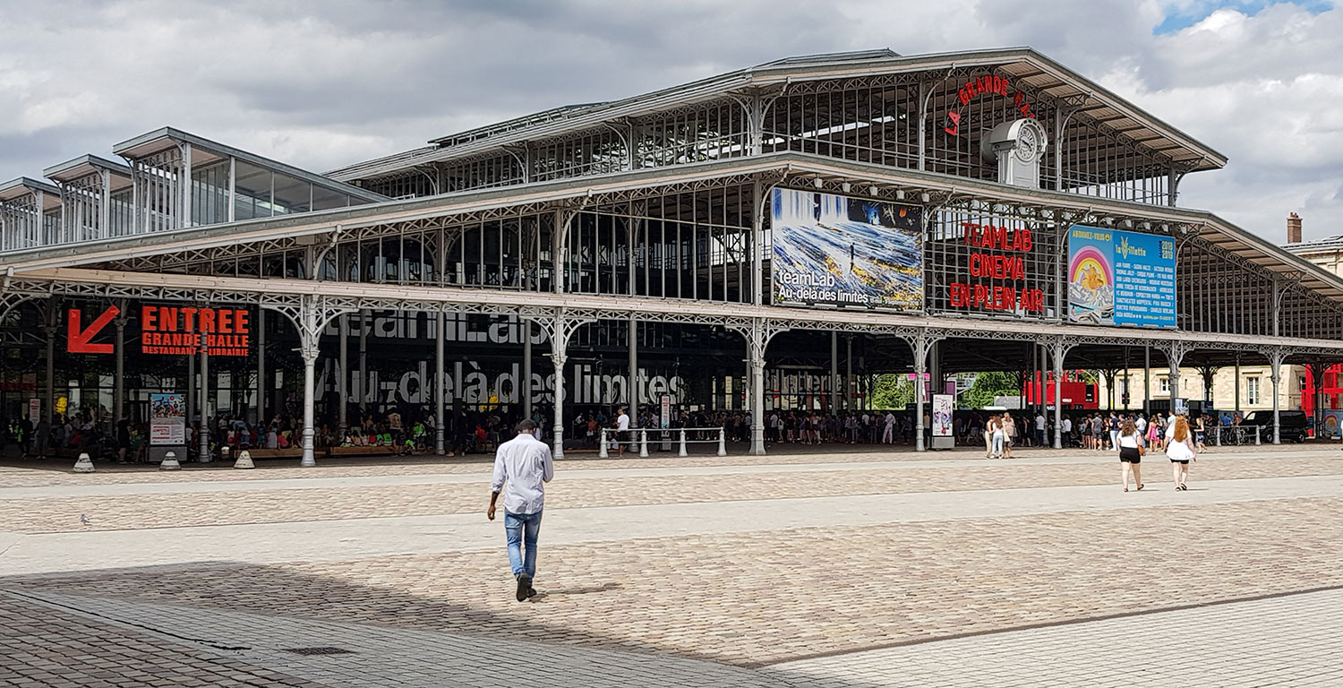 An die Schlachthofzeiten erinnert nur die ehemalige Rinderauktionshalle. Die „Grande Halle de la Villette“ wird jetzt als Veranstaltungs- und Ausstellungshalle genutzt. Die Shows sind meist sehr interessant: 2018 projizierte ein japanisches Künstlerkollektiv Blumen, Pflanzen, Tiere und Wasserfälle an die Wände (Jean-Luc und ich waren begeistert), im Sommer 2022 wirbeln bunte Luftballons durch die Räume, 2024 war der Park die größte Fanzone der Olympischen Spiele.
