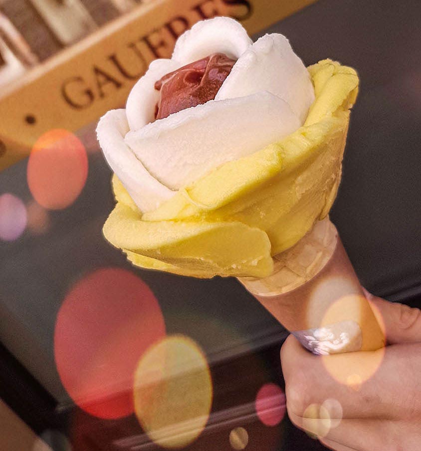 Chocalat, Vanille, Mango in Bio-Qualität – solch ein Eis gibt es sicherlich an vielen Eisdielen in Paris. Doch nur die Bedienungen von Amorino spachteln es (ja wirklich, sie benutzen kleine Holzspachtel) mit inbrünstiger Hingabe zu wunderschönen Blütenkelchen. Wer dem noch eins draufsetzen will, lässt es sich in der „Grand“-Version mit einem Macaron verzieren. Lecker! In Paris gibt es im Moment 27 Amorino-Eisläden, u.a. am Place des Vosges, Rue des Francs Bourgeois.