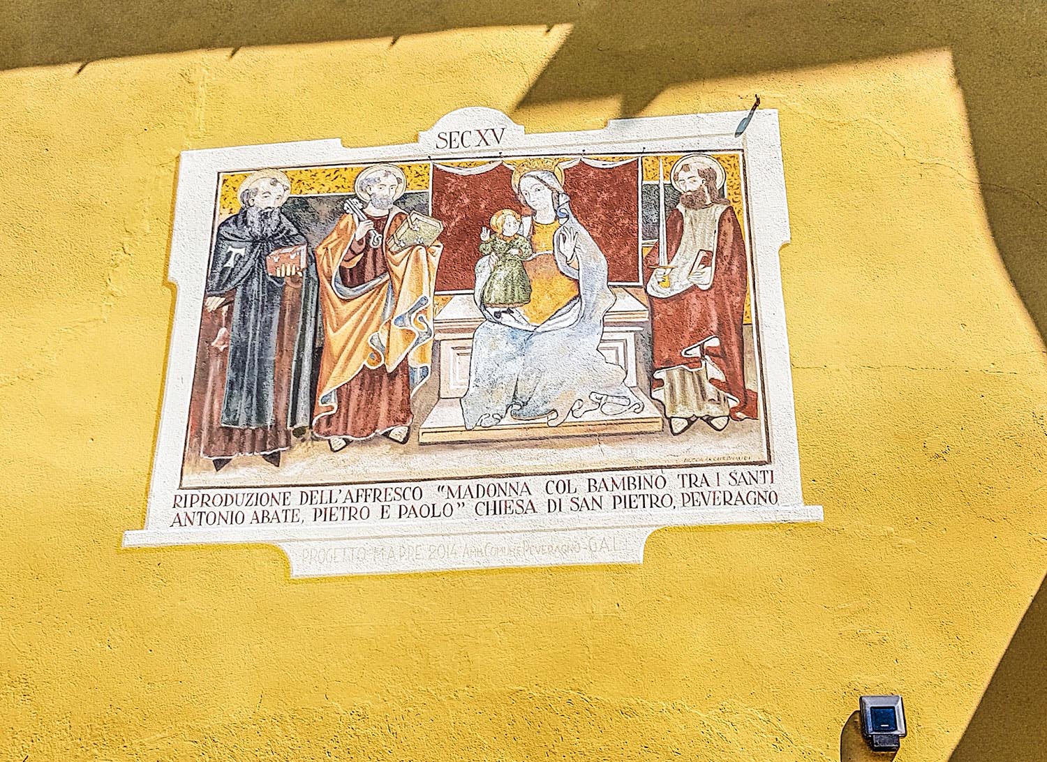 Bunte Fassaden, Wandmalereien und Laubengänge sind typisch für die Gegend. So auch in Peveragno. Die Wandmalereien haben oft religiöse Motive, es gibt aber auch Illusionsmalereien, die Elemente an der Fassade vorgaukeln, die es gar nicht gibt und wieder andere Gemälde zeigen Situationen aus dem Dorfalltag oder aus dem Handwerk.