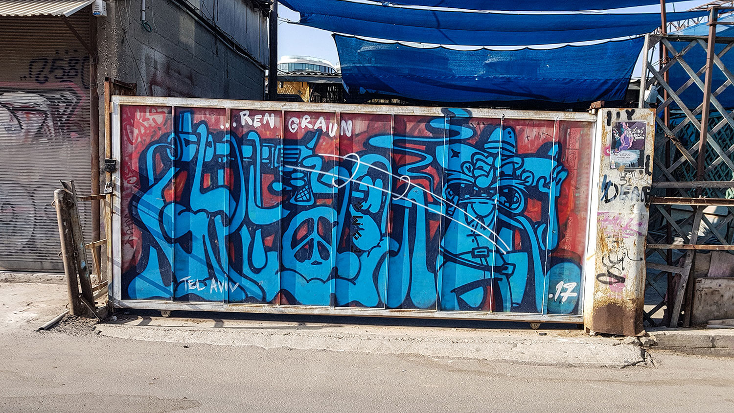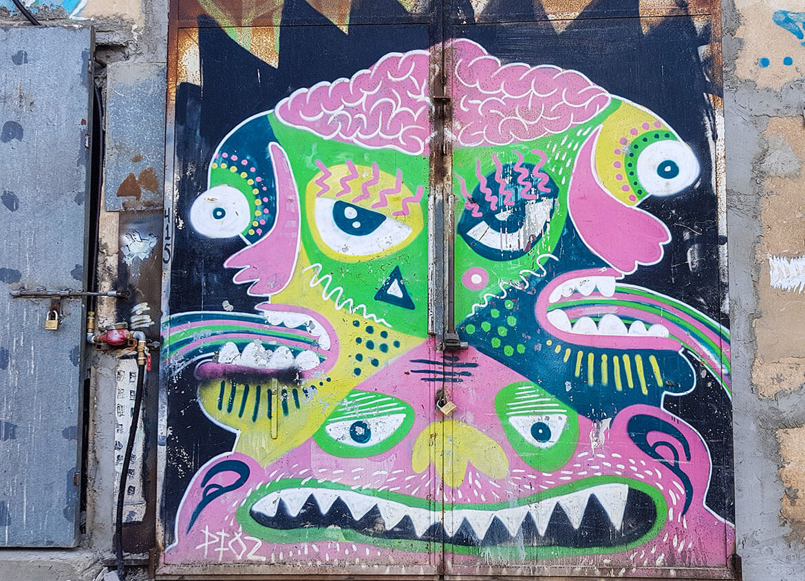Im Tel Aviver Stadtteil Florentin habe ich in einer wunderschönen Airbnb-Unterkunft übernachtet. Der Blick vom Balkon auf die Skyline war gigantisch und wenn ich zur Tür hinaustrat, bin ich geradewegs in die Streetart von Tel Aviv hineingestolpert. Wenn du magst, folge mir auf diese kleine Fotoreise in die kleinen Gassen und Straßen links und rechts der Arbabanel -Street. Die Fotos sind alle auf dem Weg zum nahe gelegenen Lewinsky Markt entstanden, ich habe mich einfach treiben lassen und die bunten Kunstwerke an den besprühten und bemalten Garagentoren und Mauern bestaunt.