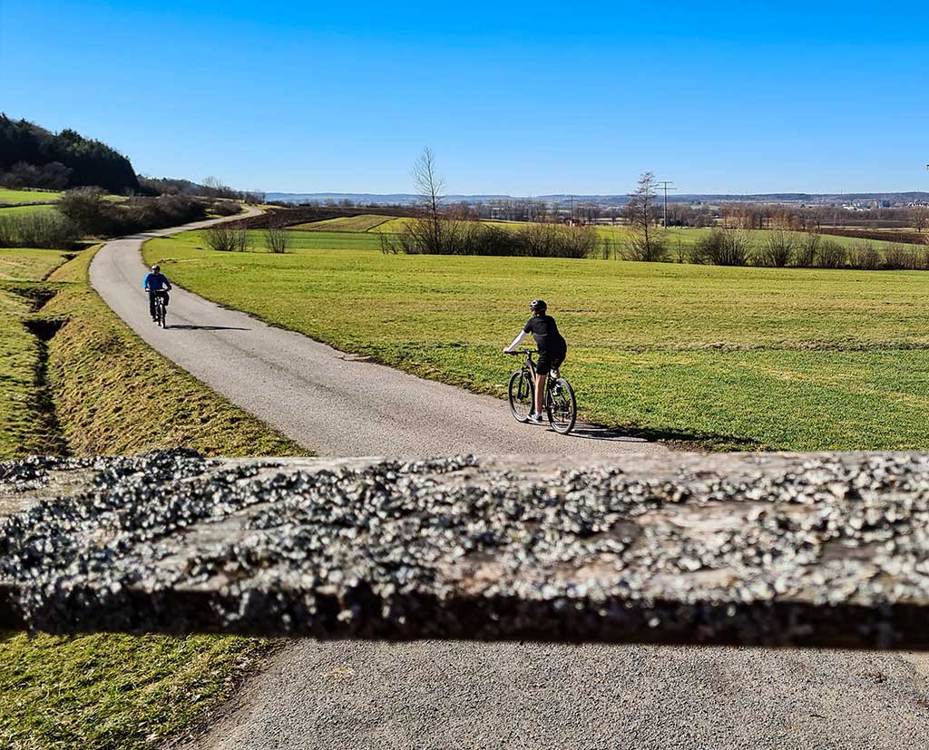 Oberhalb des Modellflugplatzes schauen wir von einem Hochsitz vorbeifahrenden Fahrradfahrern nach und genießen unser erstes Picknick in der Sonne. Die angenehmen Temperaturen täuschen ein wenig darüber hinweg, dass es erst Februar ist.