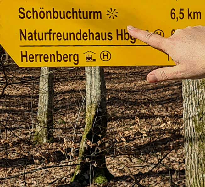 Bei frühlingshaften Temperaturen wandern wir auf dem Hauptwanderweg HW 5 von Ehningen hoch zum Schönbuchturm beim Waldfriedhof von Herrenberg. Am Tag 6 unseres Wanderprojekts legen wir beachtliche 12,4 Kilometer zurück.