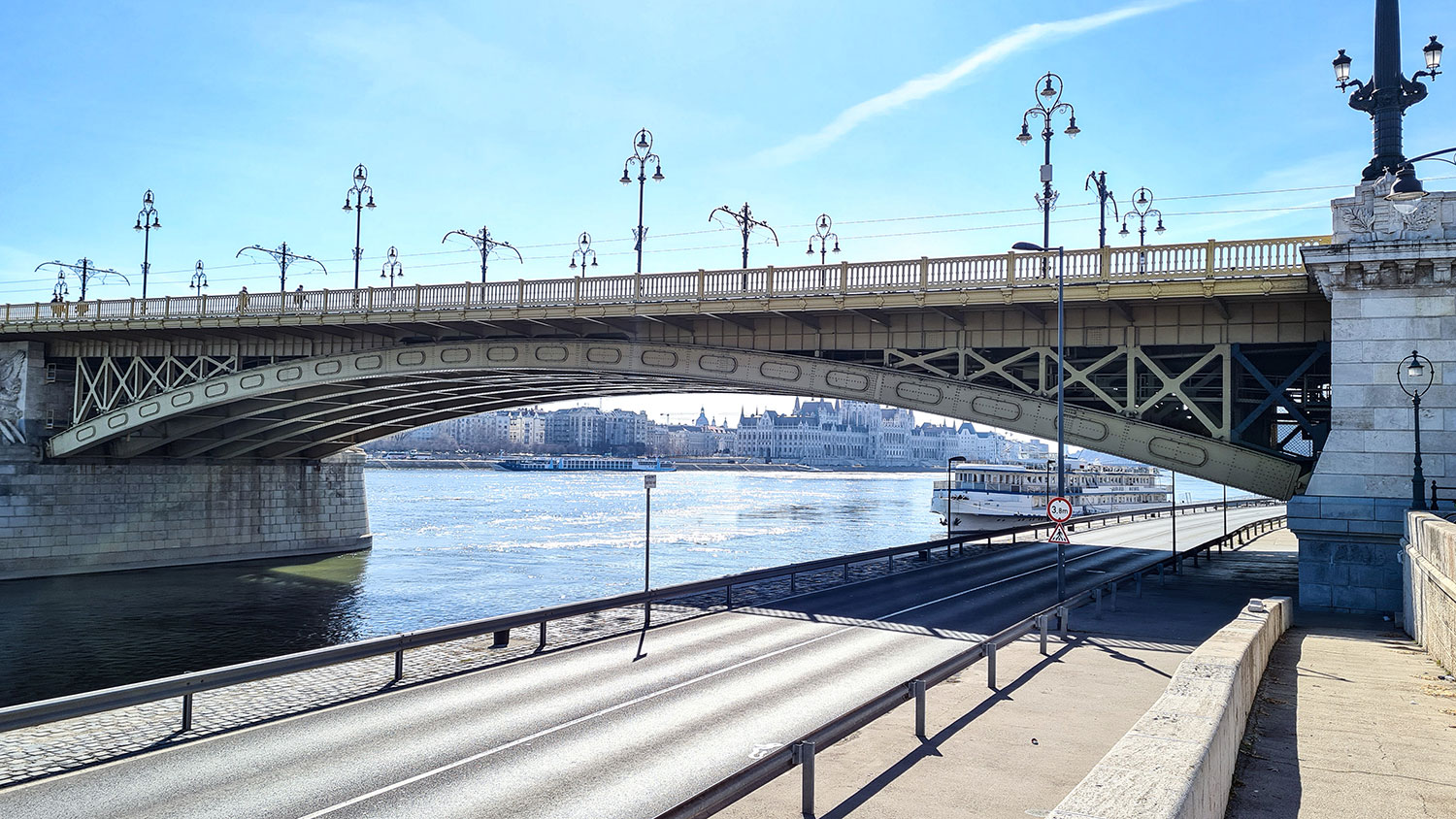 Der „Donaukorso“ zwischen Kettenbrücke und Elisabethbrücke ist die Flaniermeile am Pester Donau-Ufer schlechthin. Im März war hier noch nicht viel los, ganz anders wird es aber im Sommer sein, wenn alle draußen sitzen. Schreib mir doch, ob du das schon erlebt hast.