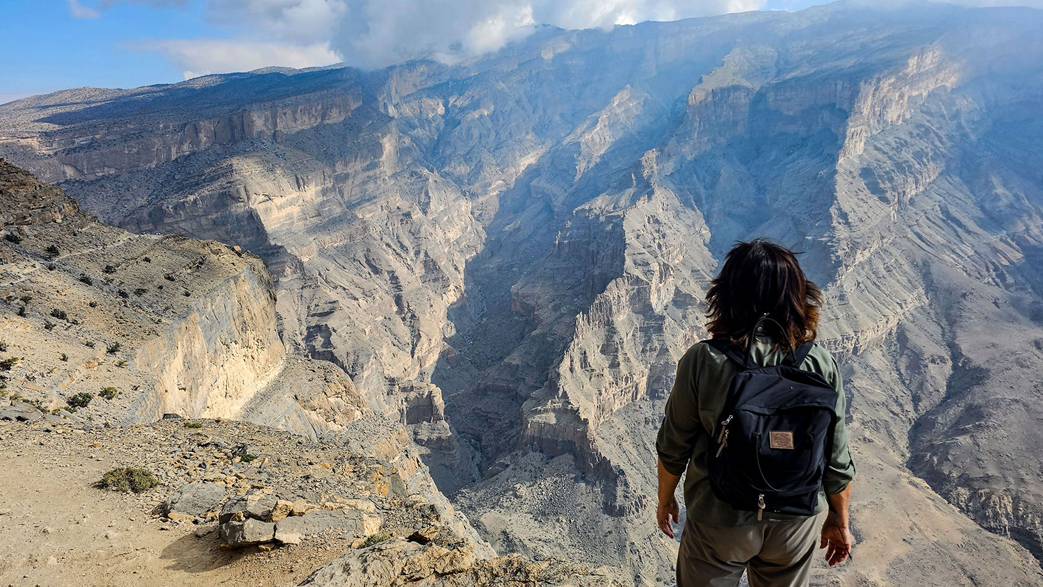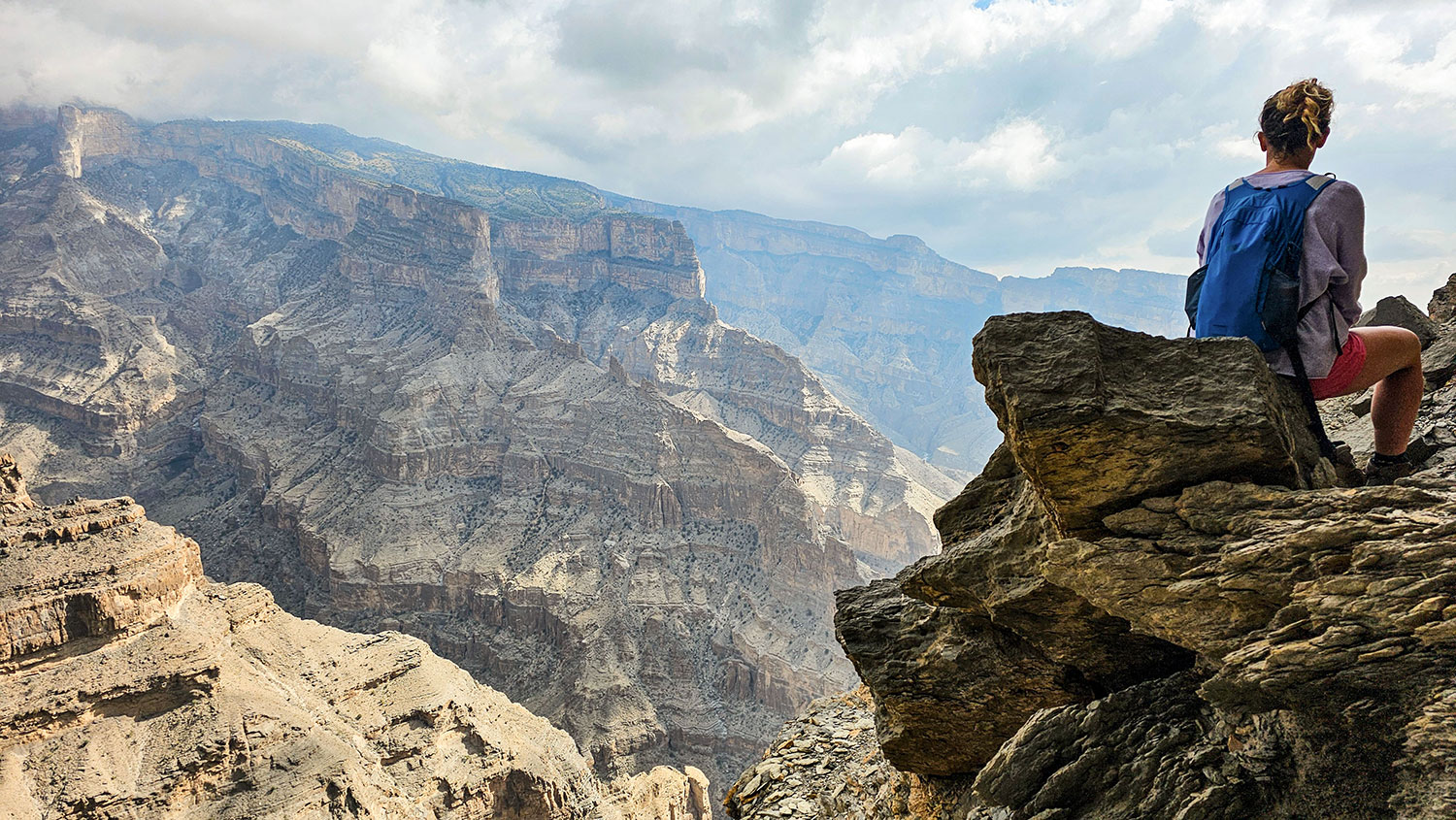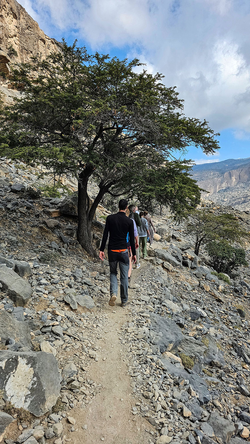 Und dann folgte eines der eindrucksvollsten Erlebnisse: die Wanderung auf dem sogenannten Balcony Walk. Ein schmaler, teils ausgesetzter Wanderweg, der sich entlang der Felswände des Jebel Shams – dem höchsten Berg des Oman – zieht. Die Wanderung dauert ca. 4 Stunden hin und zurück und verlangt Trittsicherheit sowie Schwindelfreiheit.