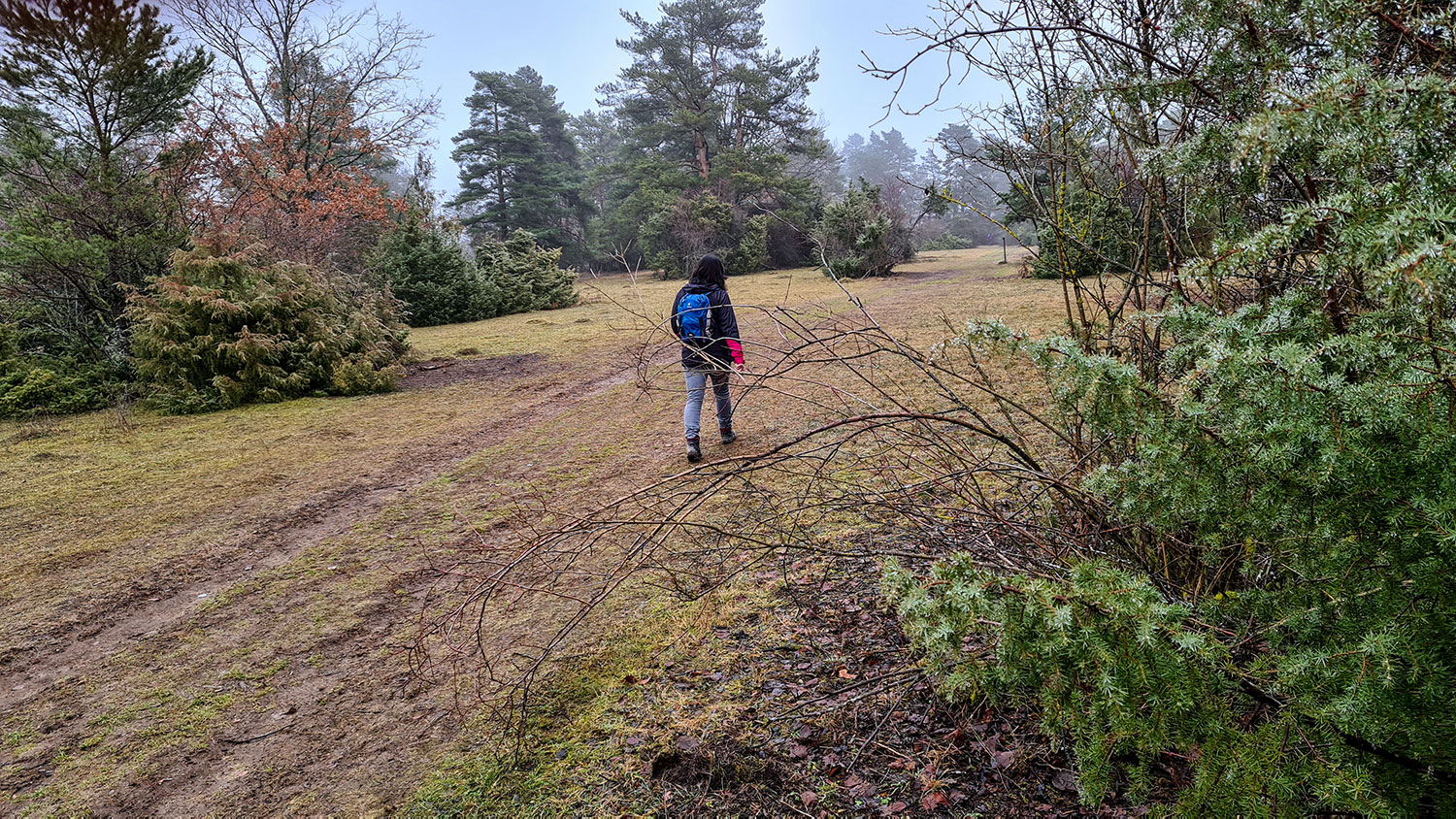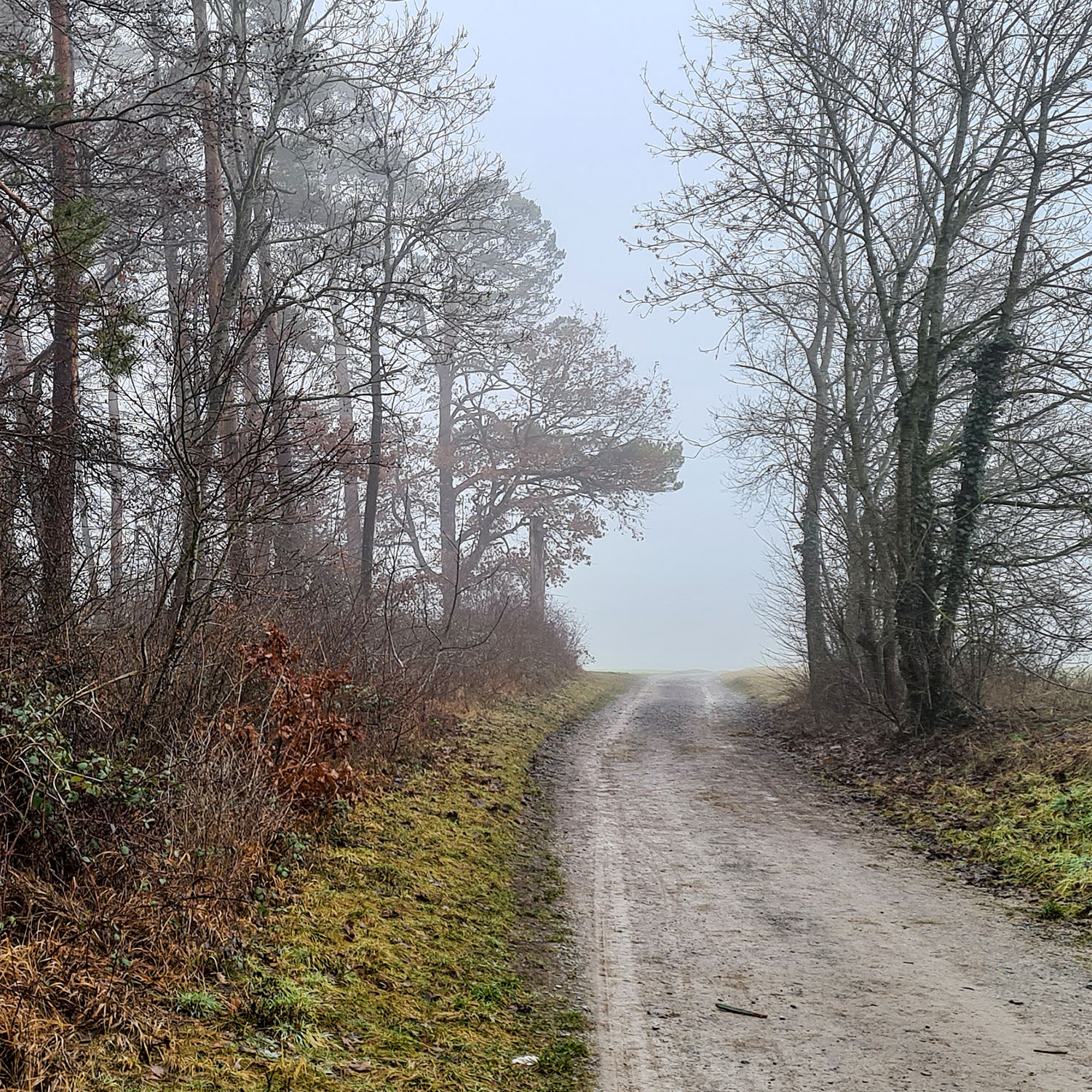 matschige Wege, ruhiges Wetter, Nebel