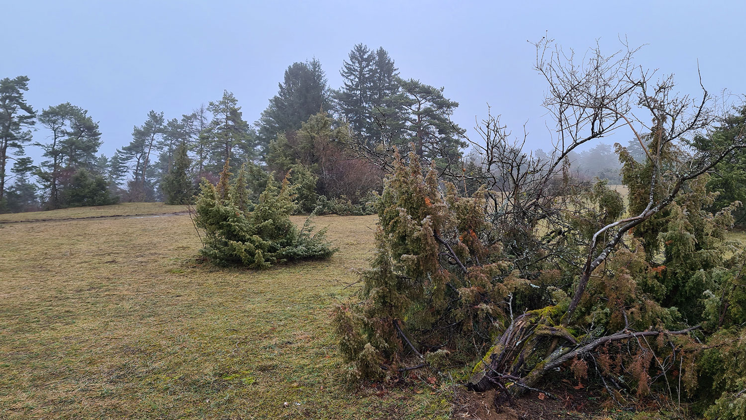 OK, es hätte schlimmer kommen können: Starkregen, pfeifender Wind und Minusgrade. Das alles hatten wir nicht, doch am Ende zwang uns der dichte Nebel, die Wanderung abzubrechen. Wir sind in Steinegg gestartet und über den Büchelberg bis zum Möttlinger Köpfle gewandert. So in etwa waren das dann doch zehn Kilometer.
