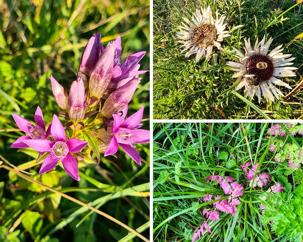 Ich bin froh, dass ich Ralph schon am Samstagabend überreden konnte, auf den Sternberg zu steigen und so kann ich euch schöne Fotos von der Abendstimmung bei Sonnenschein zeigen. Die Wacholderheide unterhalb des Turms ist wunderschön. Ich entdecke Herbstenzian und Silberdisteln, rot leuchtende Hagebutten kündigen den Herbst an. Nur die Schafe fehlen zum perfekten Alb-Klischee.