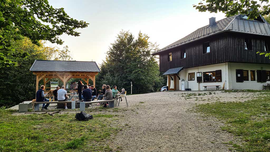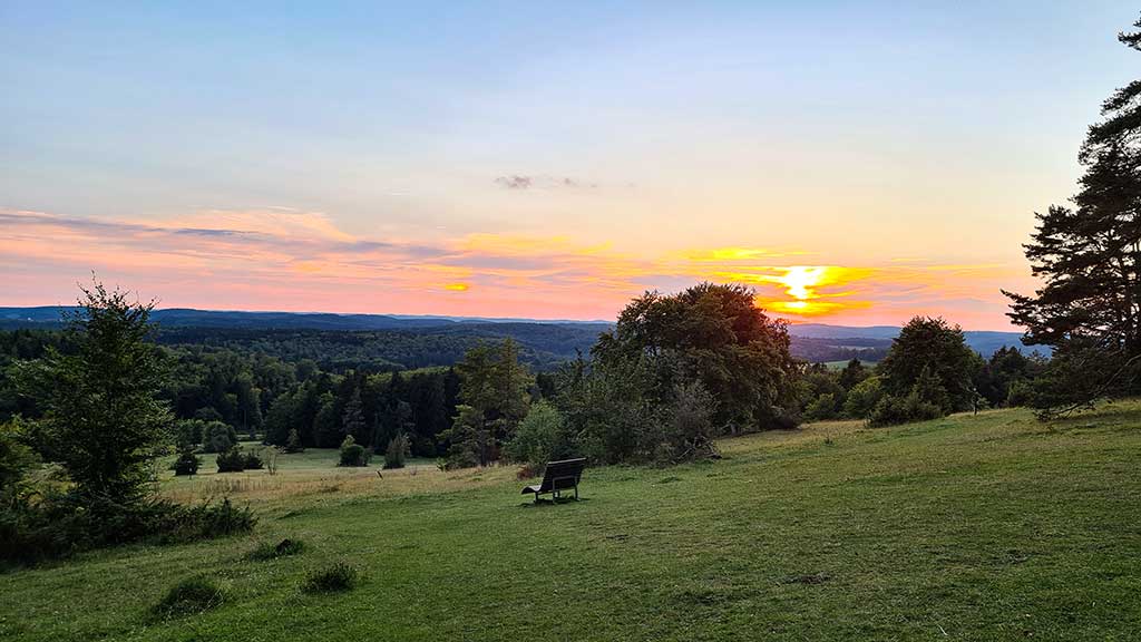 Nur ein paar Meter entfernt befindet sich das Wanderheim des Schwäbischen Albvereins. Eigentlich hatte der Kiosk schon geschlossen, aber die Wirtsleute waren so nett und haben uns zu später Stunde noch verköstigt. Ja, und so eine rote Wurst schmeckt immer gut, besonders, wenn man sie nach einer Wanderung über dem offenen Feuer am Stock brät. Findest du nicht auch?