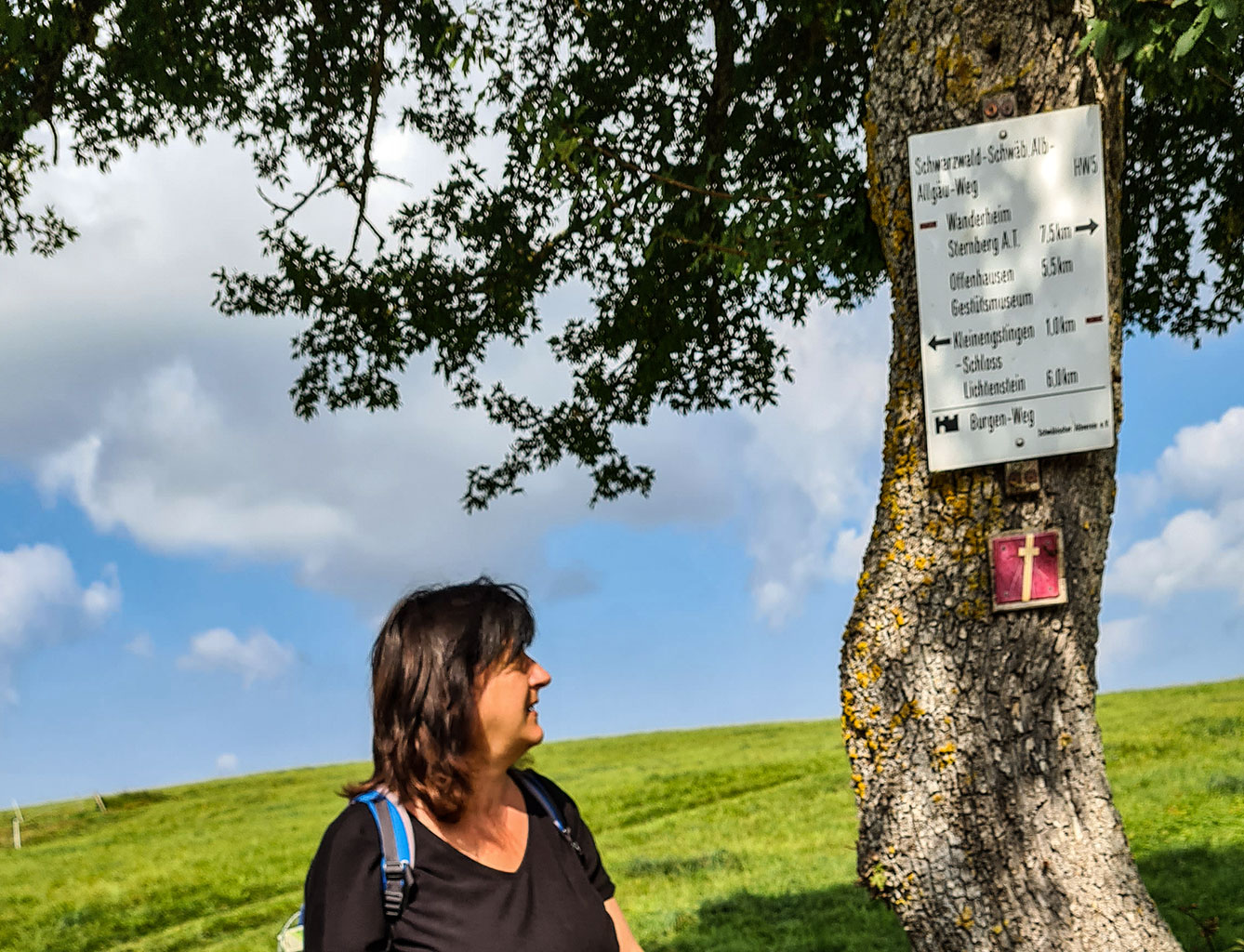 Nein, in den Bus steigen wir heute nicht ein, sondern wandern vom Bahnhof über die Gleise und durch Engstingen Richtung „Skilift/Loipe.“ Hab ich euch schon erzählt, dass wir uns mit dem HW 5 jetzt auch auf dem Burgenweg befinden?