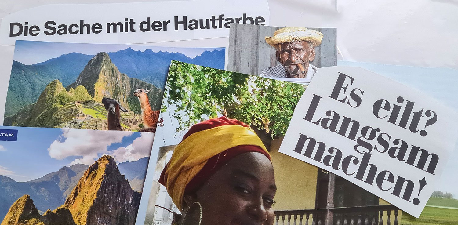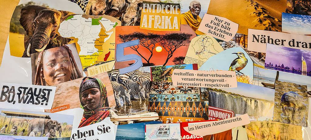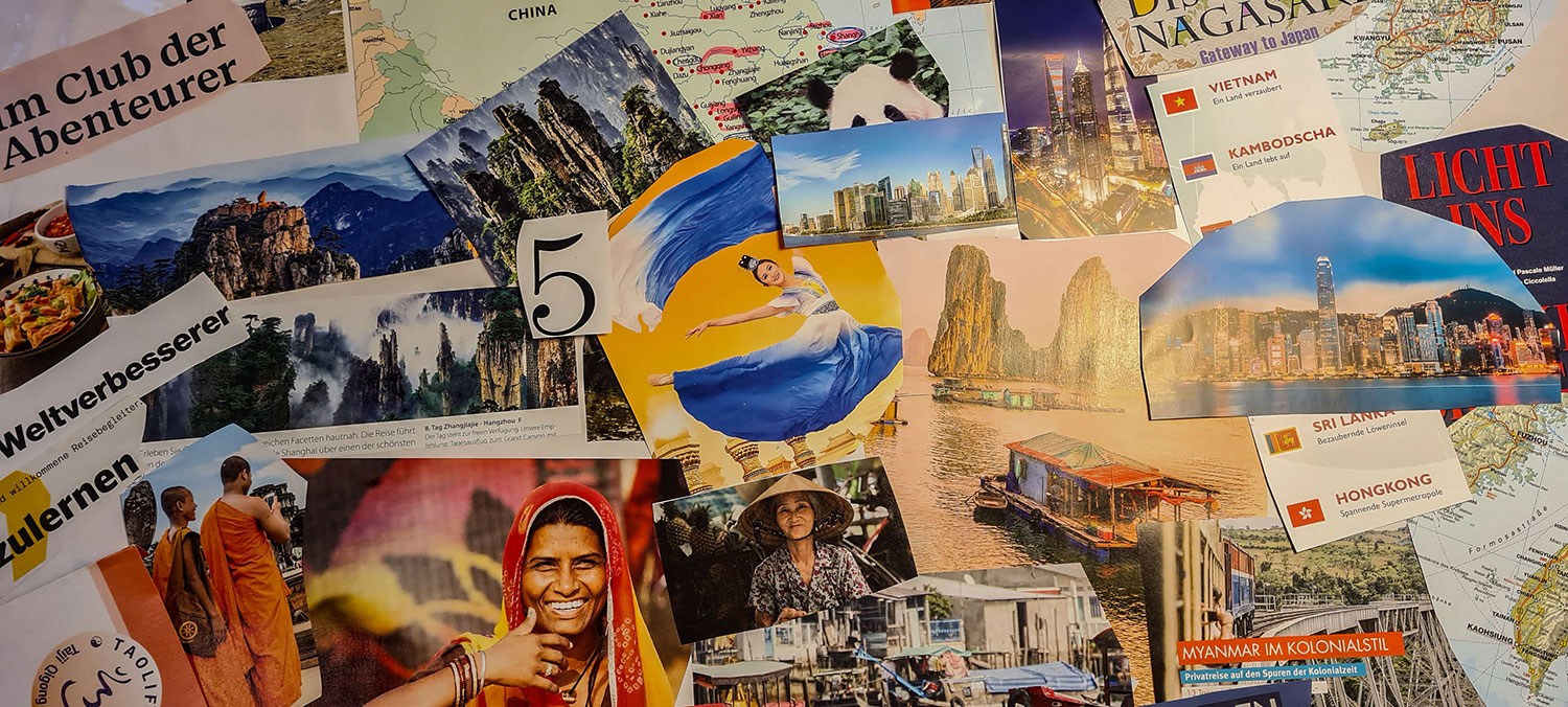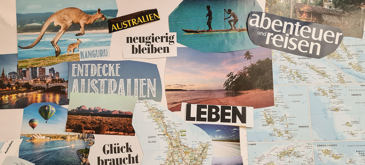 Ich habe alte Atlanten hervorgekramt und werde durch Reisekataloge blättern, viel googeln, Gespräche führen, Reportagen anschauen und, und, und… Jeden Tag möchte ich ein kleines Puzzlestück hinzufügen. Und damit die Vision für mich ein Bild ergibt, fertige ich eine Collage an und berichte täglich auf diesem Blog, was die Recherchen am Vorabend ergeben haben. Meine Hoffnung ist, dass ich dann Anfang März schon klarer sehe.