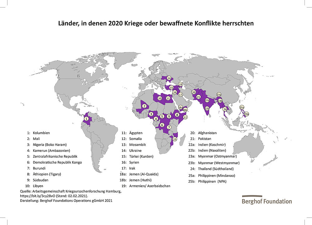 Mir ist gestern eine ganz andere Grafik in die Hände gefallen. Schau mal, sie zeigt, wo überall Kriegs- und Krisengebiete auf der Welt sind.