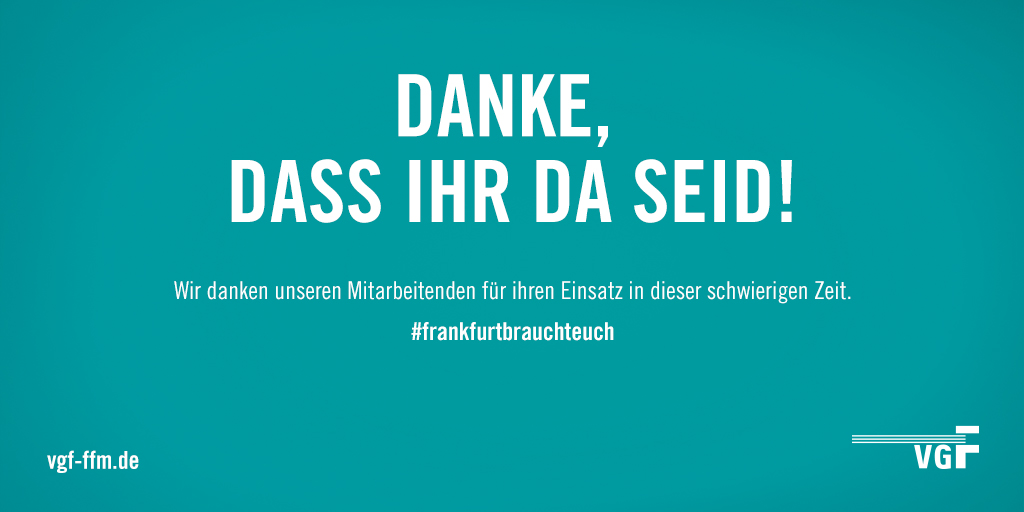 „Jetzt müsste man einfach mal Danke sagen“, das haben am vergangenen Wochenende viele gedacht. Eine Welle der Dankbarkeit flutet durchs Soziale Netz. Die VGF startet die Kampagne #Frankfurtbrauchteuch, für die „Helden des Gesundheitswesens“ bietet die BVG kostenlose Sonderfahrten für Ärzte, Pflegepersonal und Rettungssanitäter im Minibus „Berlkönig“ an.