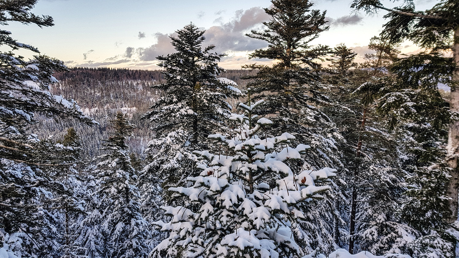 Gleich hinterm Kassenhäuschen des Baumwipfelpfads fängt das Wipfelvergnügen schon an. Ganz ohne Klettern und Anstrengung habe ich die oberen Etage des Waldes erreicht. Ich mache meine ersten Schritte auf dem schneebedeckten Holzbohlenweg und wage einen Blick nach unten. Ganz schön tief, die Schlucht.